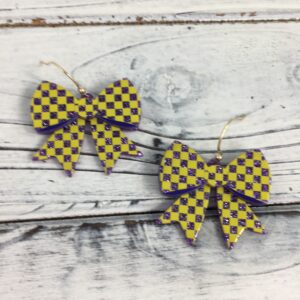 Checkered print bow dangle earrings PUGD VER6916-12