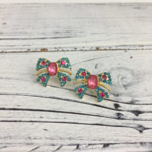 Checkered print bow post earrings PUGD VER6871-11