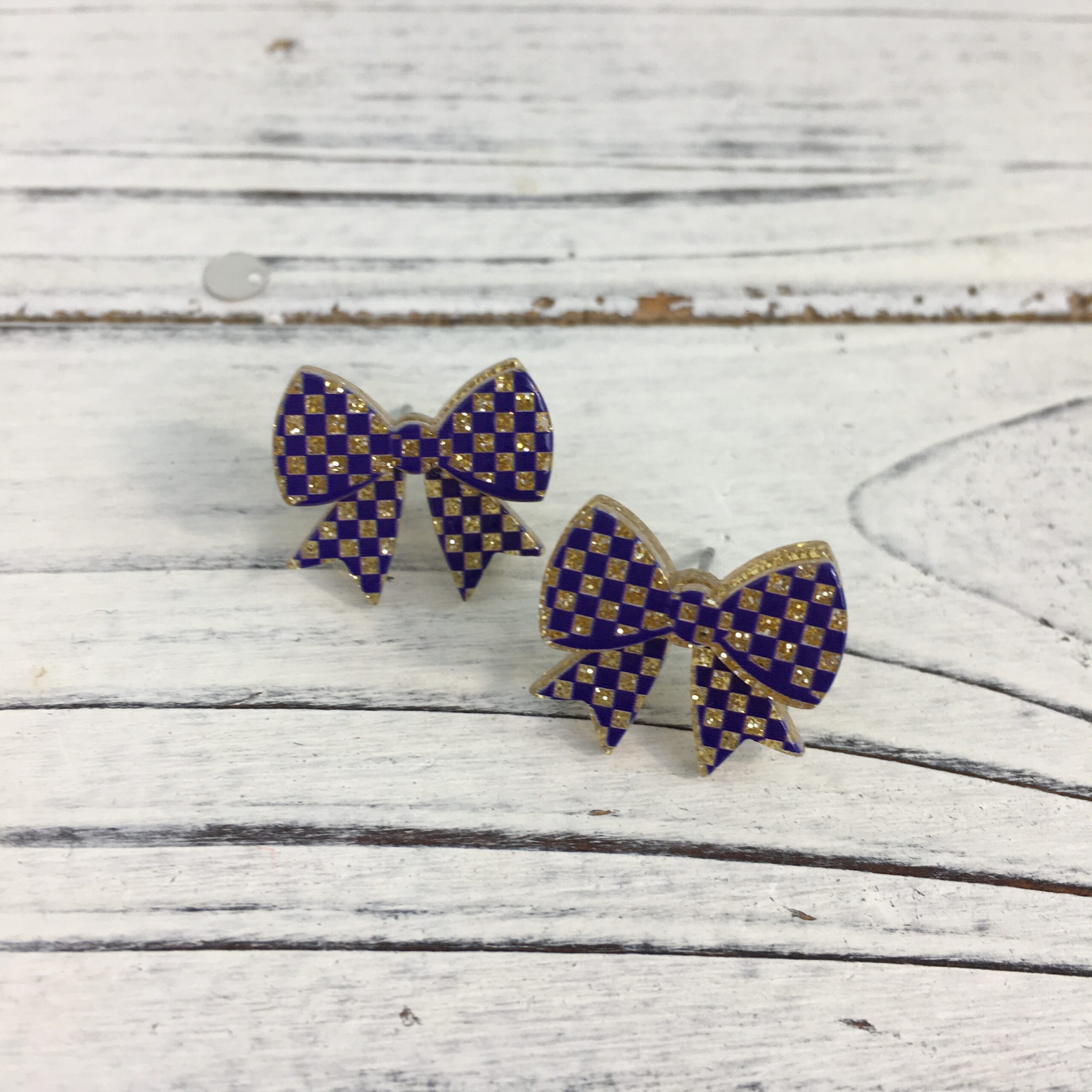 Checkered print bow post earrings PUGD VER6871-11