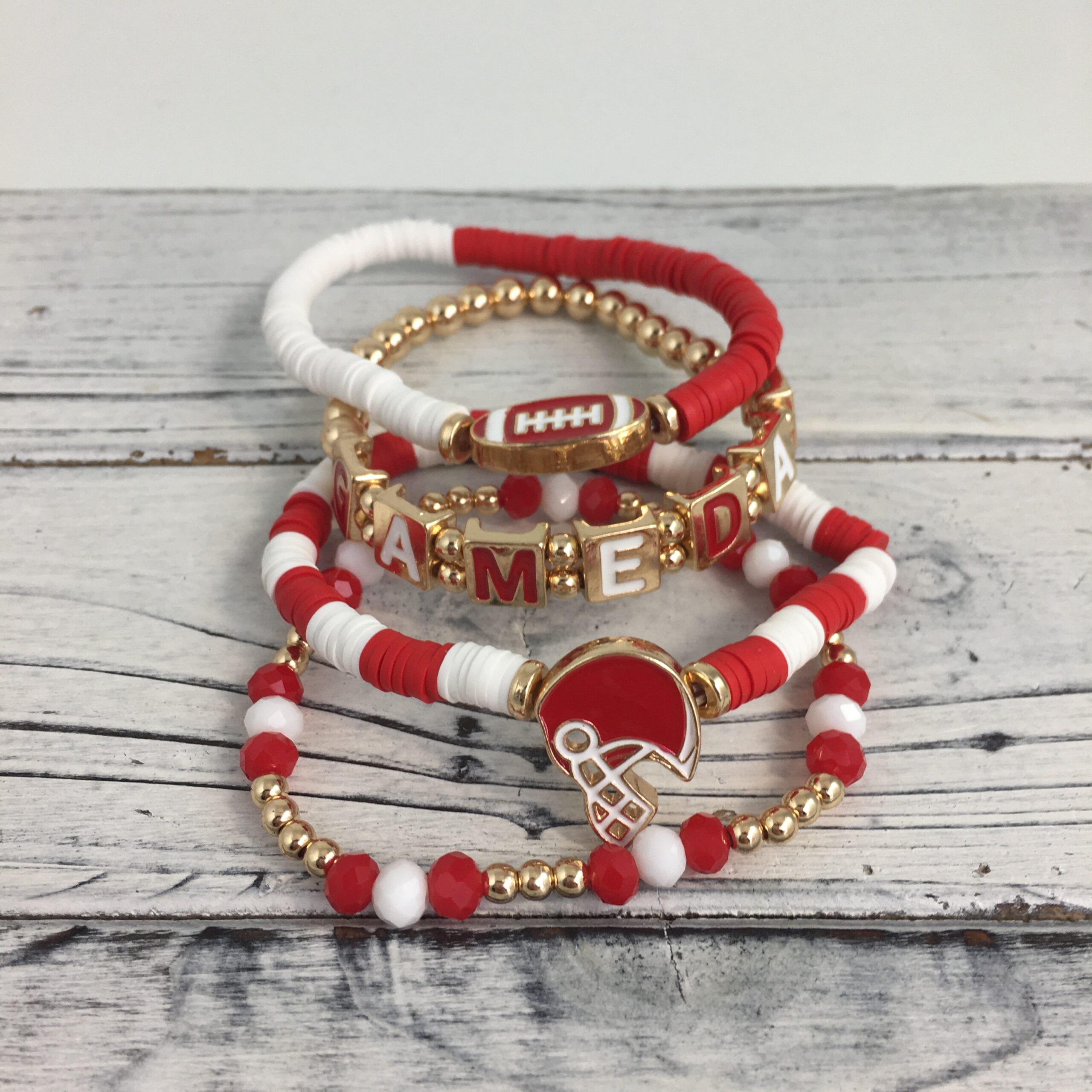 Football layered bracelet set GSB2064-RDWT