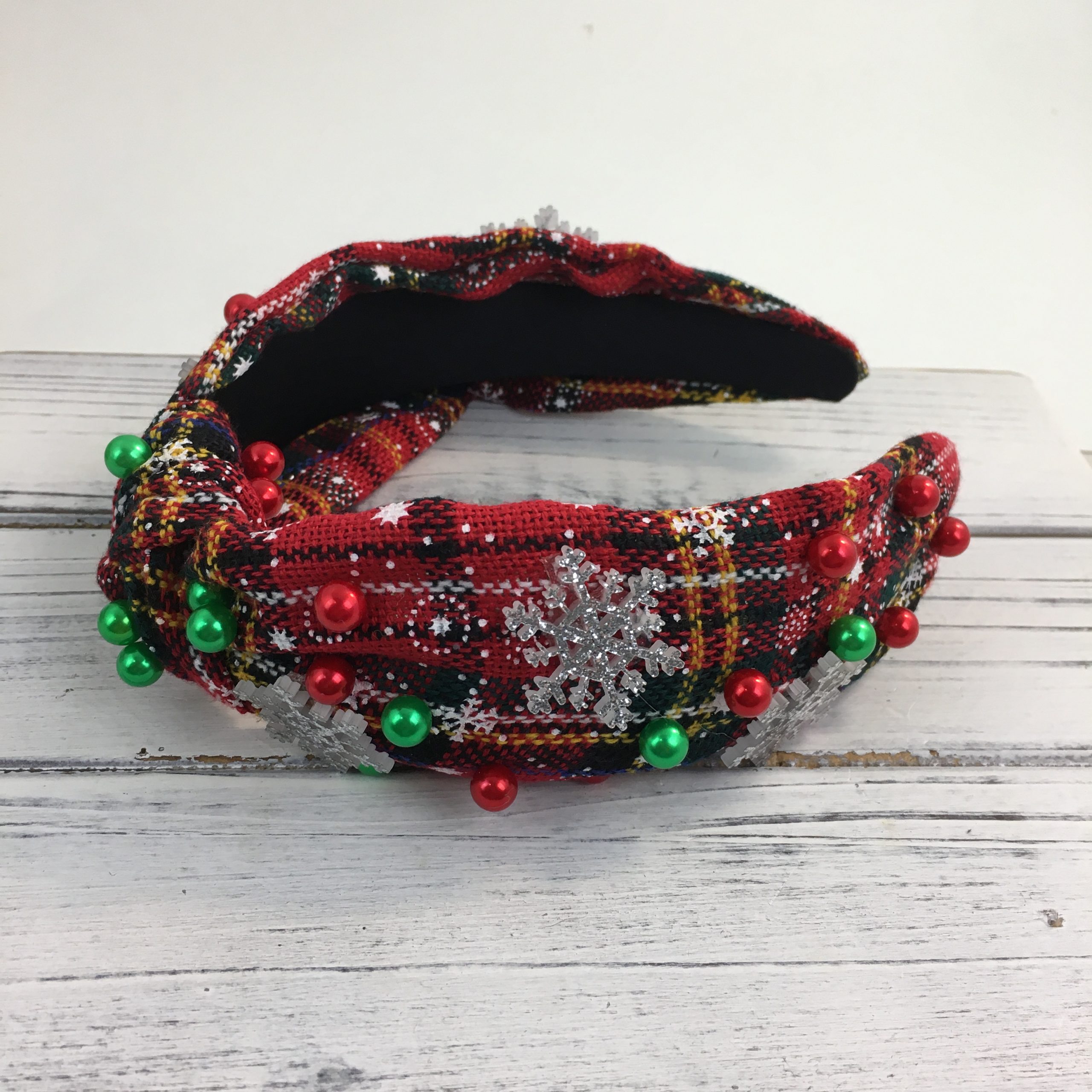 XMAS plaid Pearl/snowflake charm headband JHB1098 GRN/REN